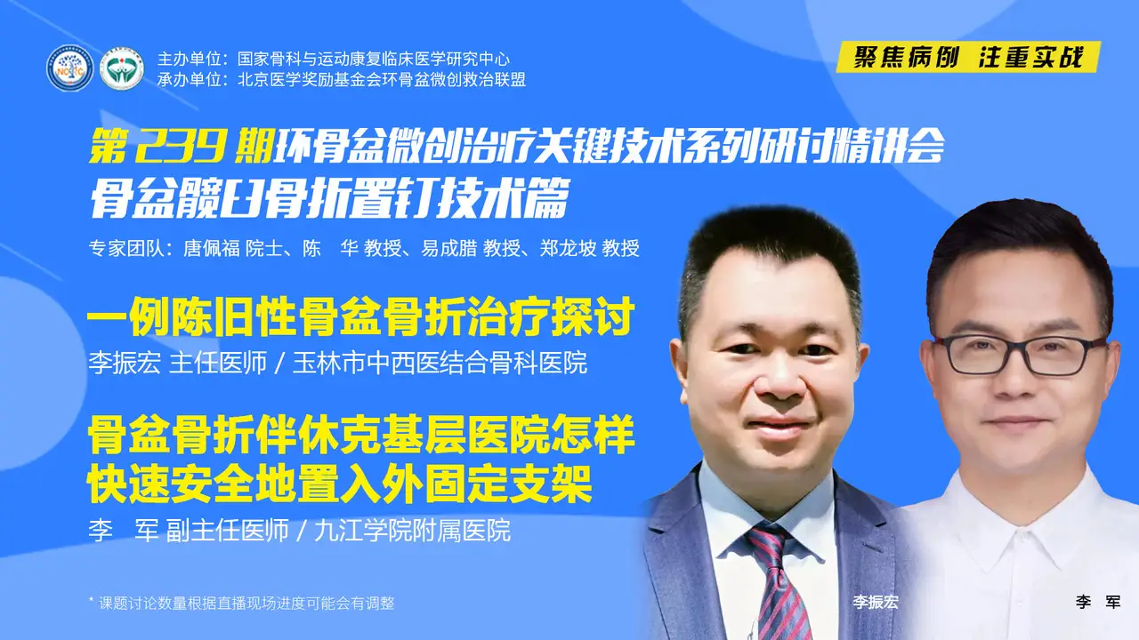 第239期精讲会【骨盆髋臼骨折置钉技术篇】|李振宏 李军