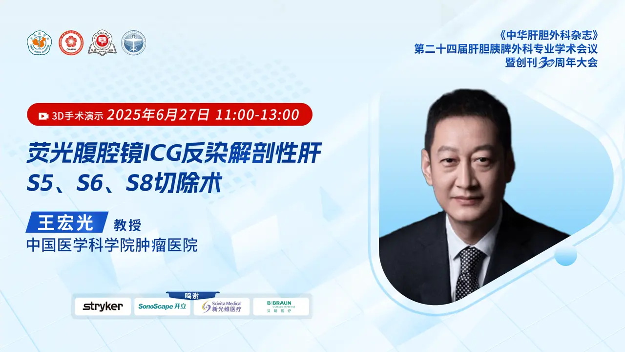 8:30手术演示二 腹腔镜下荧光联合超声造影双模态引导肝转移灶切除+直肠癌根治术 汤坚强教授 王宏光教授